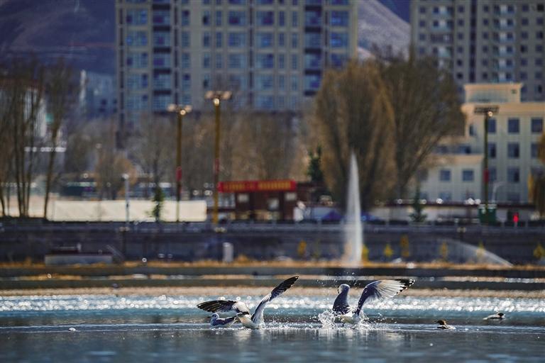 候鳥大約是拉薩入冬的標(biāo)志。初冬時(shí)節(jié),拉魯濕地和拉薩河邊,到處都是從遠(yuǎn)方飛來越冬的黃鴨、斑頭雁。隨著拉薩生態(tài)環(huán)境更加優(yōu)美,這些可愛的精靈選擇在此越冬,讓許多觀鳥愛好者心動(dòng)。每天清晨天還未亮,他們就早早地守候在水邊,只為記錄下候鳥迎著第一縷朝陽(yáng)翩然飛舞的景象。