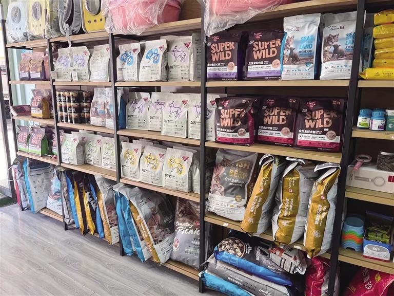 寵兒寵物診所內(nèi)擺滿貓糧狗糧。