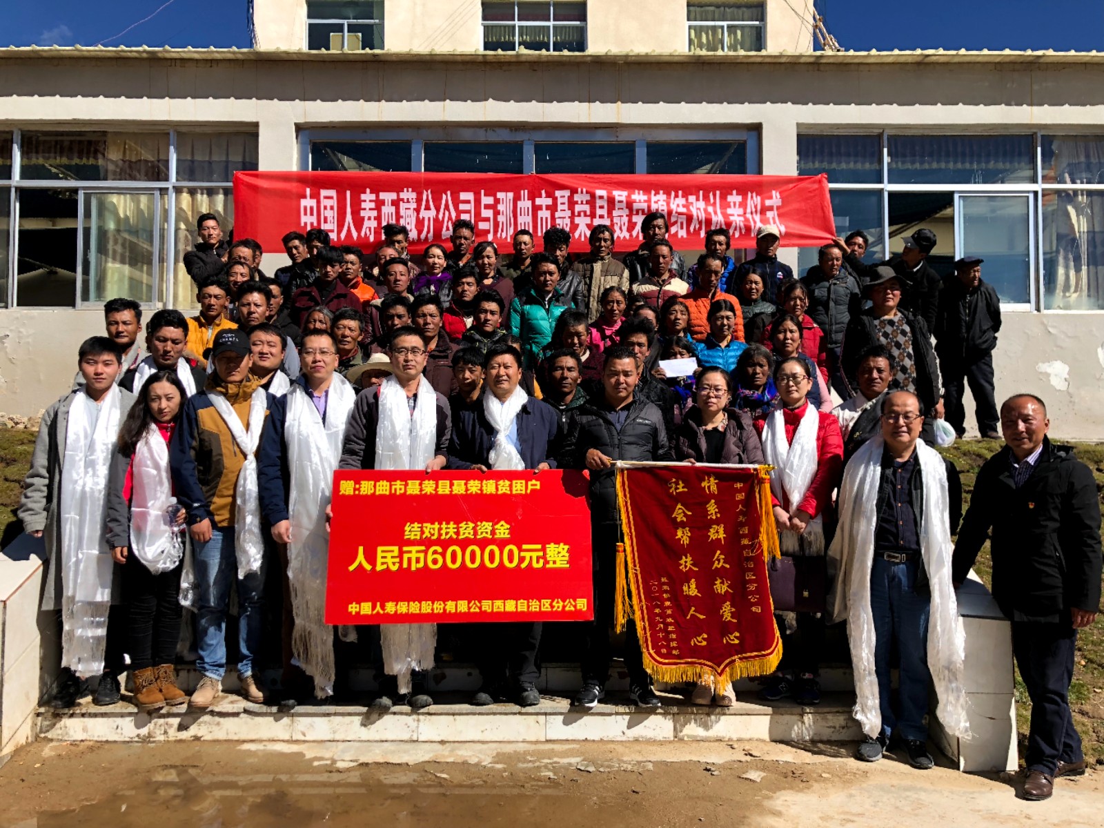 圖為中國人壽西藏分公司干部職工與那曲市聶榮縣聶榮鎮(zhèn)開展結(jié)對認(rèn)親幫扶活動。