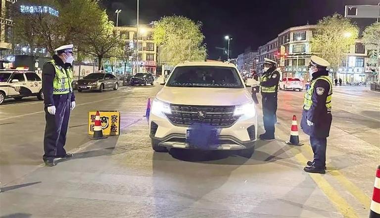 拉薩交警開(kāi)展夜查酒駕統(tǒng)一行動(dòng)。圖由拉薩交警提供