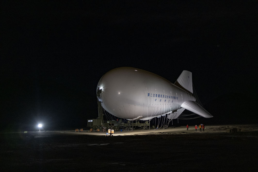 “極目一號(hào)”Ⅲ型浮空艇在發(fā)放場地準(zhǔn)備升空(2022年5月15日攝)。