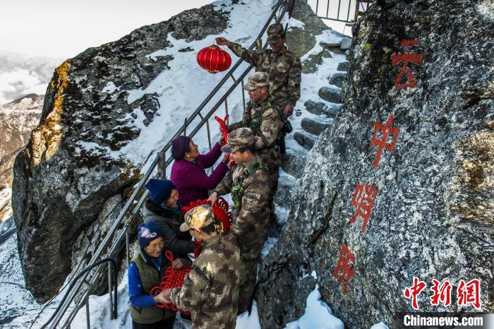資料圖為三位藏族阿媽新年上山慰問(wèn)“云中哨所”的官兵。 西藏軍區(qū)某邊防團(tuán)供圖