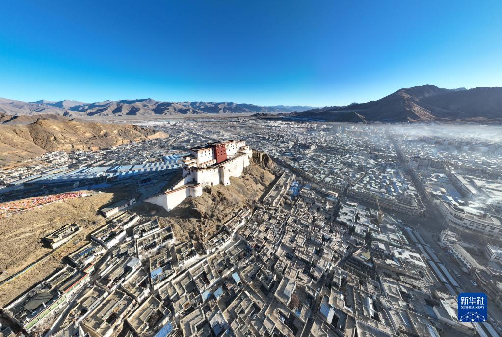 1月24日拍攝的日喀則市的清晨(無人機照片)。新華社記者 晉美多吉 攝