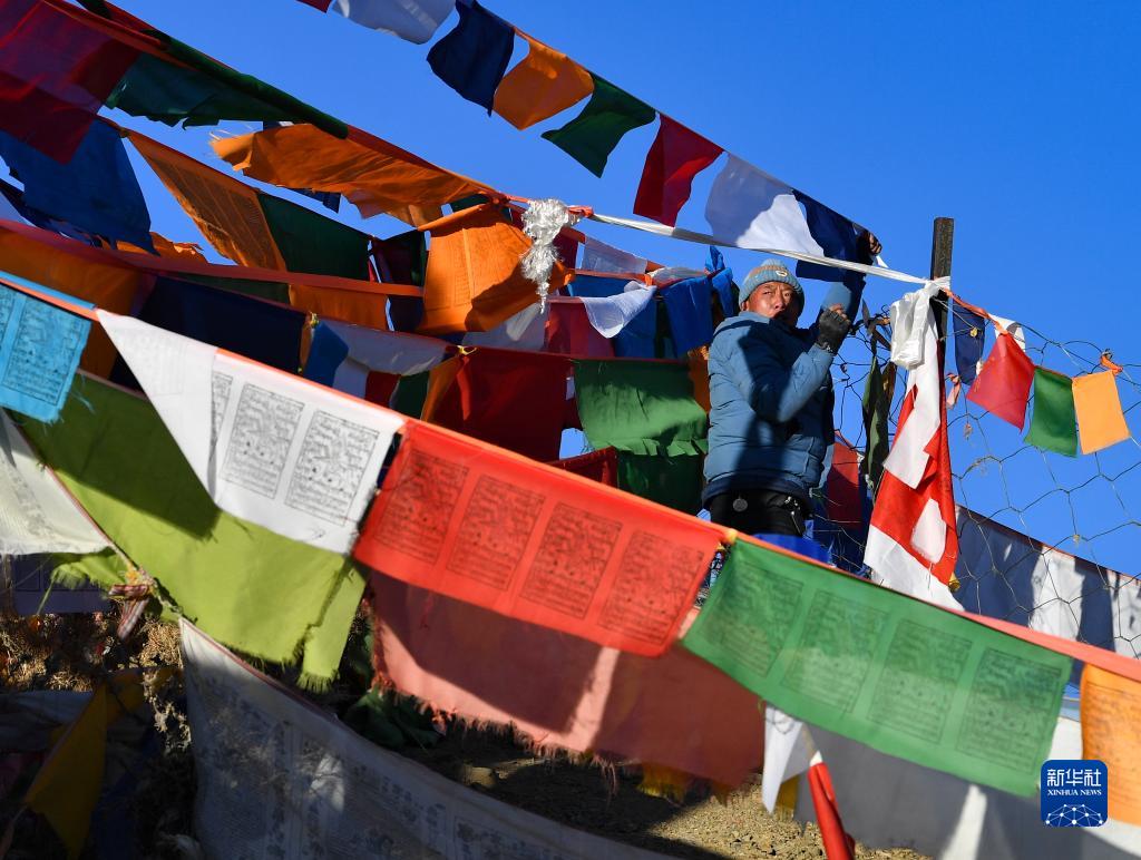 西藏日喀則地方藏歷農(nóng)家新年期間,藏族群眾沿襲傳統(tǒng),一大早就在山頂和自家屋頂上豎起新經(jīng)幡,祈愿新年風(fēng)調(diào)雨順、國泰民安。