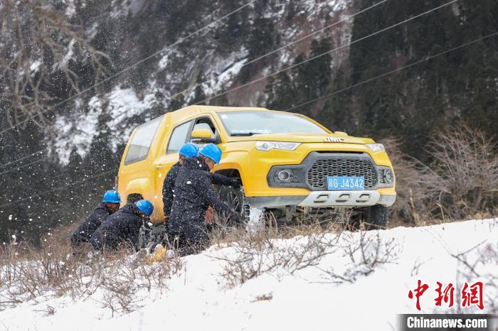 盤山公路上,積雪和暗冰使車輛打滑無法繼續(xù)前行,羅布頓珠和隊(duì)友只好下車,給車輛掛好防滑鏈繼續(xù)前行,原本兩個(gè)小時(shí)的車程,這次花了4個(gè)小時(shí)才抵達(dá)巡線點(diǎn)。