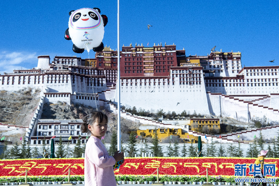 一名小女孩在布達拉宮廣場拍照留念(1月30日攝)。新華網(wǎng) 旦增努布 攝