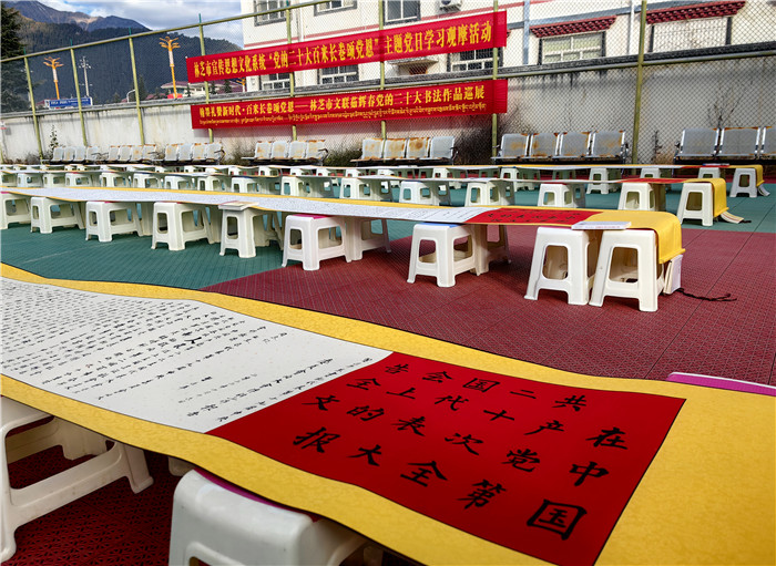 創(chuàng)新載體,全方位宣傳。林芝市統(tǒng)籌各類宣傳資源,線上線下同頻共振,全方位、多角度、寬領(lǐng)域、深層次宣傳黨的二十大精神和區(qū)黨委十屆三次全會、市委二屆三次全會精神,營造學(xué)習(xí)宣傳的濃厚氛圍。一是新聞宣傳強信心。林芝報、林芝廣播電視臺、西藏林芝網(wǎng)、微林芝等市屬主流媒體紛紛開設(shè)《學(xué)習(xí)貫徹黨的二十大》《新時代新征程新偉業(yè)》等多個專題專欄,持續(xù)推出學(xué)習(xí)貫徹黨的二十大精神相關(guān)報道。截至目前,共刊播《基層宣講員讓黨的二十大精神翩翩飛入百姓家》《軍民共話美好未來 繪就美麗鄉(xiāng)村新畫卷》等相關(guān)新聞2500余條。二是社會面宣傳筑同心。采取“屏、板、欄、幅”立體宣傳方式,在全市各級黨政機關(guān)和企事業(yè)單位大門LED電子顯示屏以及市、縣城區(qū)主要街道、跨街龍門、出租車頂燈、汽車站等公共場所的宣傳媒介上滾動播放自治區(qū)統(tǒng)一印發(fā)的宣傳標(biāo)語1.2萬余條次,更新懸掛國旗3.5萬余面,制作發(fā)放宣傳海報1.5萬張、宣傳品2500余個,形成抬頭可見、隨處可學(xué)的濃厚社會氛圍。察隅縣上察隅鎮(zhèn)遲巴村村“兩委”和駐村工作隊用彩色粉筆繪制黨的二十大、“新黨章”等主題黑板報,用畫筆向村民傳遞黨的最新政策,深受群眾喜愛。三是網(wǎng)絡(luò)宣傳聚民心。充分發(fā)揮新媒體平臺宣傳形式豐富的特點,持續(xù)推送重磅報道和重點文章,策劃打造一批融媒體產(chǎn)品,在全網(wǎng)迅速興起學(xué)習(xí)宣傳貫徹會議精神熱潮。市委網(wǎng)信辦策劃制作短視頻《學(xué)習(xí)黨的二十大精神 談心得感悟》、“林芝融媒”抖音號推出《二十大時光》微視頻,將鏡頭對準(zhǔn)二十大代表、基層黨員群眾,展現(xiàn)全市干部群眾積極向上的良好風(fēng)貌?!鞍鸵巳诿健倍兑籼柾瞥觥包h的二十大精神快問快答”系列活動,線上線下聯(lián)動學(xué)習(xí),推動黨的二十大精神入腦入心?!安煊缛诿健倍兑籼柌邉濋_展《鄉(xiāng)村振興正當(dāng)時》黨的二十大主題抖音直播活動,通過網(wǎng)絡(luò)直觀展現(xiàn)新時代察隅新農(nóng)村、新氣象、新希望。目前已開展7場直播活動,觀看人數(shù)達(dá)10萬人次。四是文藝宣傳暖人心。充分發(fā)揮市、縣(區(qū))、村三級文藝文化團體作用,組織開展“深入生活 扎根人民”“幸福不忘共產(chǎn)黨 陽光路上夢起航”等各類文藝文化活動,精心打造文藝精品力作,用文藝活動、文藝作品溫暖人心。截至目前,各級文藝演出隊開展文藝匯演293場次,參與人數(shù)4.2萬余人次;創(chuàng)作推出音樂作品《沐浴幸?!?、攝影作品《我和國旗》、書法美術(shù)作品《建功新時代 奮進新征程》、文學(xué)作品《黨的光輝照萬家》等文藝作品300余個。波密縣完全小學(xué)在崗云杉林景區(qū)組織開展“學(xué)習(xí)黨的二十大,爭做好少年”采風(fēng)寫生活動,學(xué)生們以文藝創(chuàng)作的形式學(xué)習(xí)黨的二十大精神,并將學(xué)習(xí)成果轉(zhuǎn)化到作品中。市民族藝術(shù)團以深入挖掘歷史文化、講好紅色故事為主題,籌拍了微電影《立定村屹立的紅旗》。市文聯(lián)書法美術(shù)家協(xié)會理事茹輝春同志,在黨的二十大召開后用行、楷兩種書法形式撰寫了黨的二十大報告全文書卷,書卷共有八卷,每卷長30米。市委宣傳部、市文廣局、市文聯(lián)組織市書法美術(shù)家協(xié)會開展“禮贊二十大·送福進萬家”林芝市2023年新春書法美術(shù)家“深入生活 扎根人民”送祝福和采風(fēng)活動,共開展送春聯(lián)活動15場次,送出對聯(lián)、福字、掛軸、繪畫等作品8950幅(對),服務(wù)群眾6700余人次。