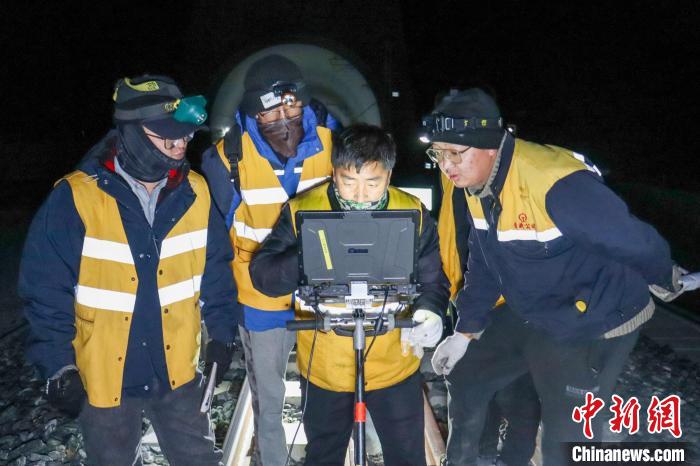 圖為2月9日晚,工作人員在西藏拉林鐵路線上進(jìn)行設(shè)備檢查作業(yè)?!●R生明 攝