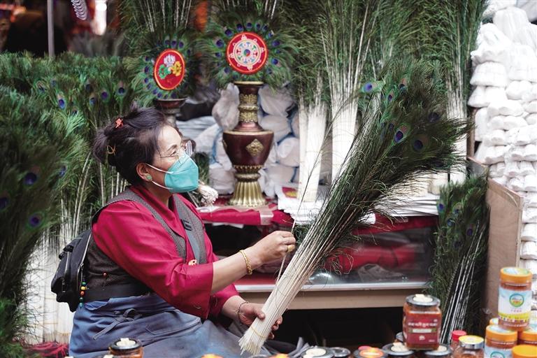 藏歷新年臨近,拉薩街頭置辦年貨的人群熙熙攘攘,大街小巷張燈結(jié)彩,古城街巷洋溢著濃濃的年味兒。八廓商城年貨會(huì)、沖賽康批發(fā)市場(chǎng)作為置辦年貨的首選地,從早到晚都是商賈云集、人聲鼎沸,一番熱鬧景象。