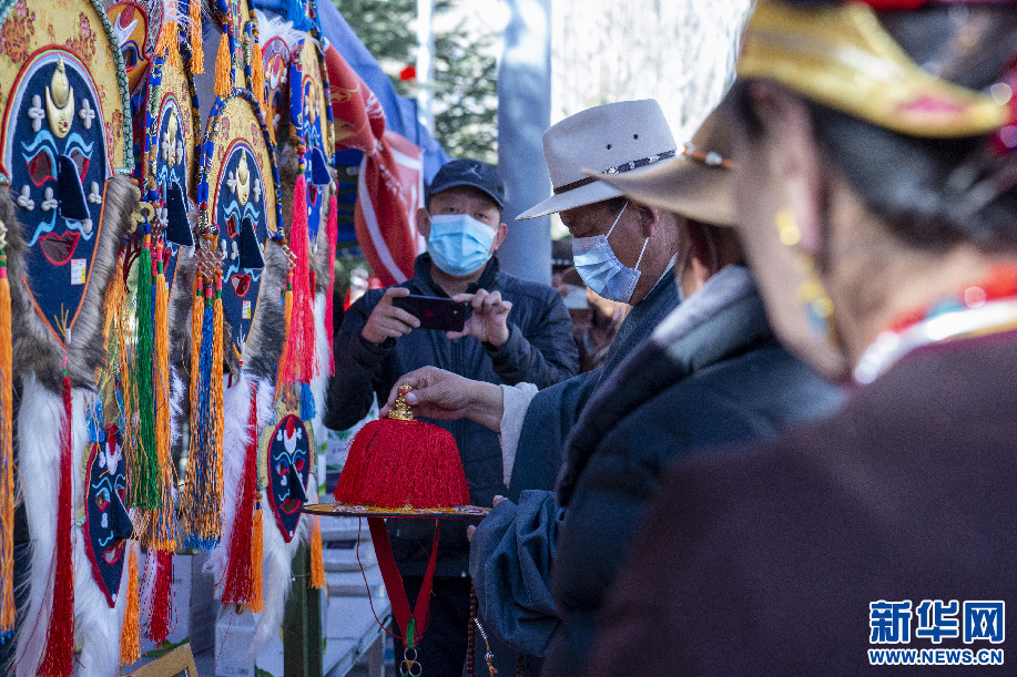 2月14日,群眾在“卓番林”藏族手工藝品牌店展位上挑選特色手工藝品。新華網(wǎng) 旦增努布 攝