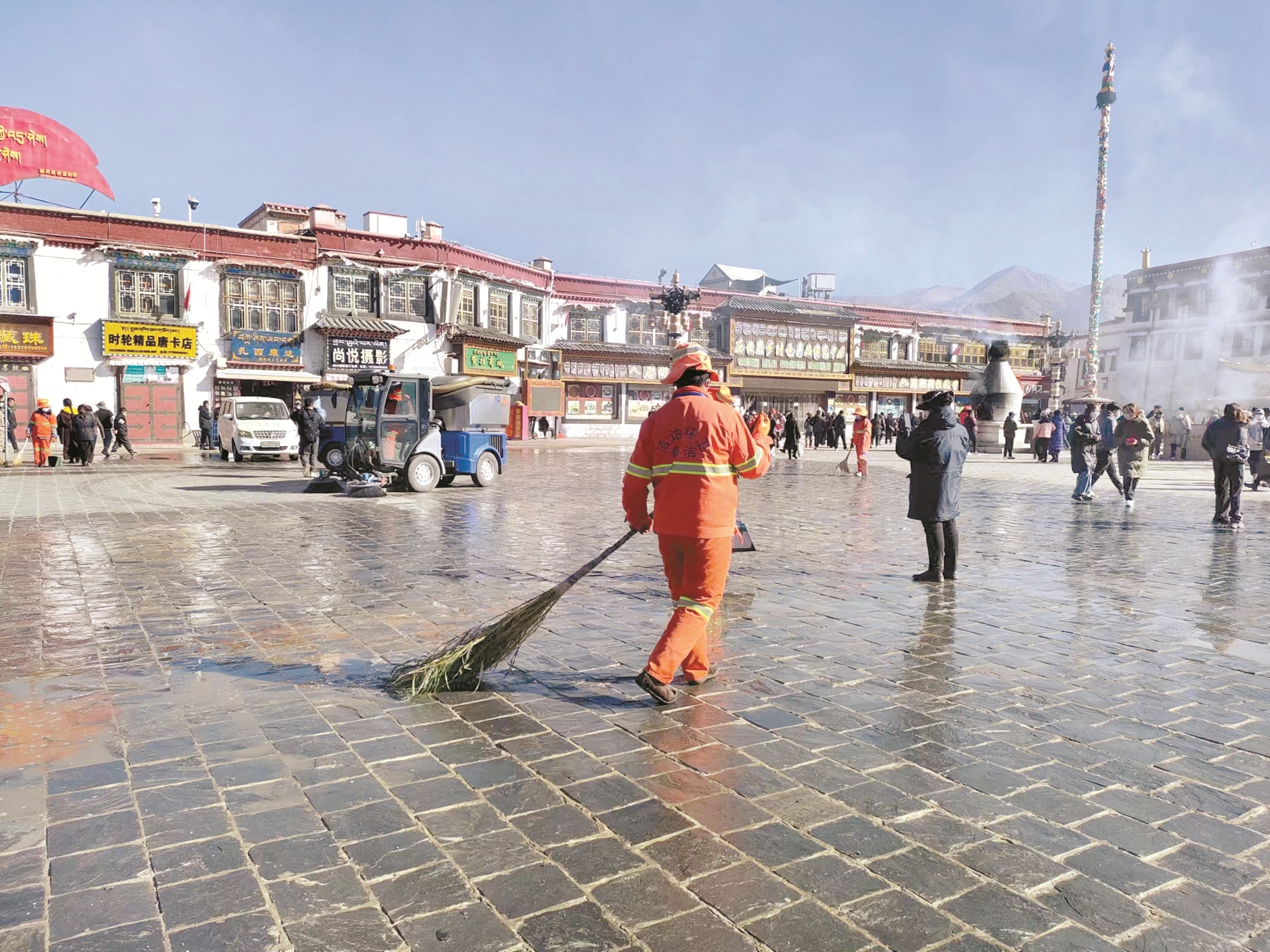 “藏歷新年期間,我們也會(huì)堅(jiān)持在崗,屆時(shí)將對(duì)古突夜、大年三十產(chǎn)生的鞭炮垃圾等進(jìn)行集中清掃,希望為市民營造一個(gè)干凈整潔的新年環(huán)境?!杯h(huán)衛(wèi)工人巴桑卓瑪說。