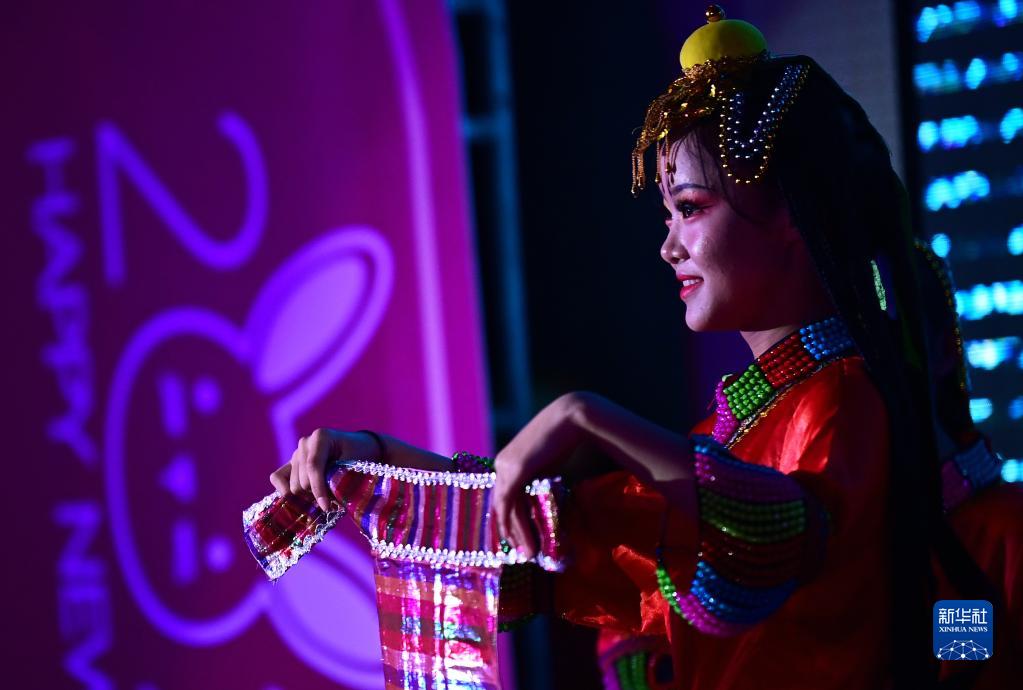 2月21日,學(xué)生在西安市浐灞第一中學(xué)舉行的藏歷新年團(tuán)拜活動(dòng)上表演藏族舞蹈。新華社記者 李一博 攝
