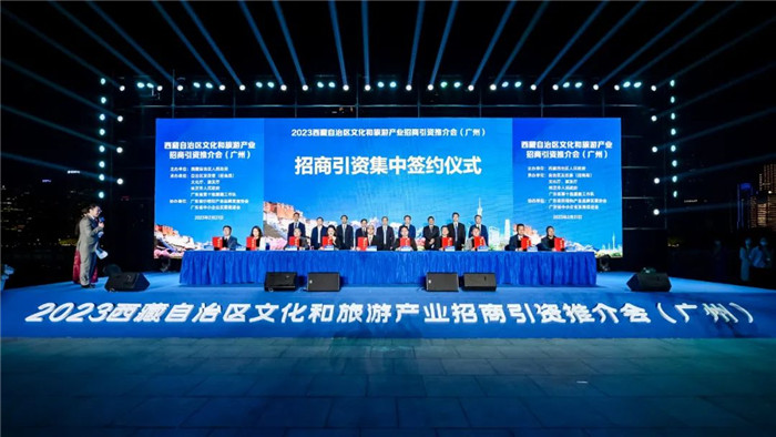 西藏招商引資工作人員與廣東省文旅企業(yè)進(jìn)行了洽談對接,共簽約文化旅游類項目11個,總投資68.43億元。