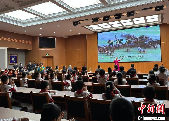 圖為活動(dòng)當(dāng)天西藏文化博物館的志愿者們帶領(lǐng)小朋友參觀館內(nèi)展覽。李晗雪 攝