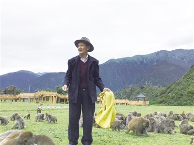 在多布杰看來,猴群也是一個小社會,母子情深、朋友互助、爭斗打架都有。在上千只猴子中,多布杰只給一只臉特別紅的小猴子取了個名字——“瑪惹”,漢語意思是“小紅”。因為出生后猴媽媽沒有奶水,它餓得嗷嗷直叫,多布杰只得將它帶回家中照料。那時,他的孫女也特別喜歡這只小猴子,每天放學(xué)回家就會給它喂吃的。幾天后,孫女翻遍了每個角落都沒有找到“瑪惹”,急得嚎啕大哭。多布杰耐心地說,我們和“瑪惹”是好朋友,帶它回來是為了讓它活下去,但它終歸是要回到猴群中,回到猴媽媽身邊?!艾斎恰遍L大后,也時常會找多布杰蹭衣撒嬌。
