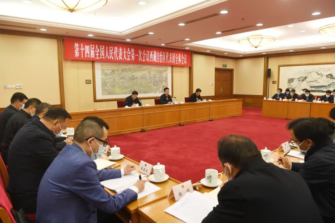 根據(jù)大會(huì)統(tǒng)一安排,3月4日下午,西藏代表團(tuán)在駐地舉行全體會(huì)議。