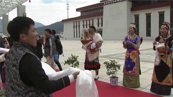 在歡迎儀式上,漂亮的工布姑娘唱起了歌,帥氣的工布小伙端起了香醇的青稞酒,副市長(zhǎng)段剛輝為游客們獻(xiàn)上潔白的哈達(dá),對(duì)遠(yuǎn)道而來的客人表示熱烈的歡迎和誠(chéng)摯的祝福,并在致辭中向游客們介紹了林芝的自然風(fēng)光和民俗文化。