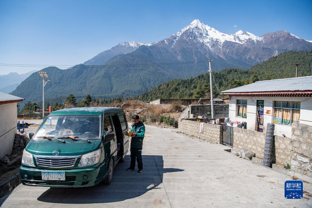 3月12日,在西藏吉隆縣沖色村,巴桑頓珠正在派件。新華社記者 孫非 攝