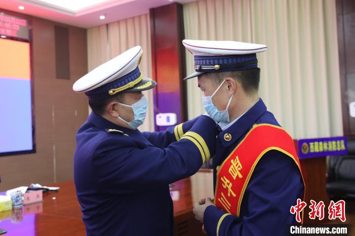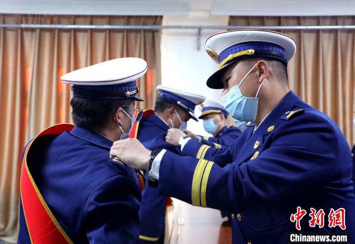 3月22日,分會(huì)場更換消防救援銜標(biāo)識(shí)?!∥鞑厣窒揽傟?duì)供圖
