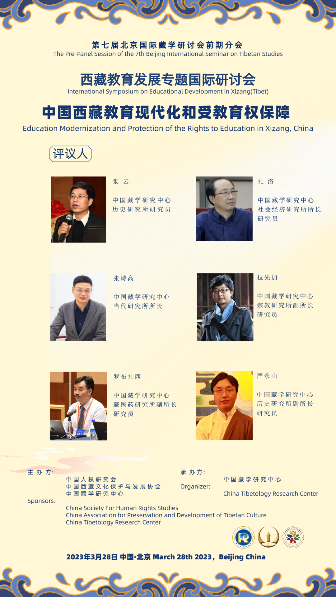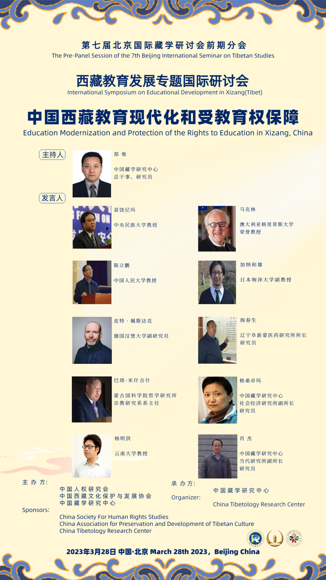 第七屆北京國(guó)際藏學(xué)研討會(huì)前期分會(huì)——西藏教育發(fā)展專題國(guó)際研討會(huì),將于2023年3月28日下午14:30在北京召開。本次會(huì)議的主題是“中國(guó)西藏教育現(xiàn)代化和受教育權(quán)保障”。