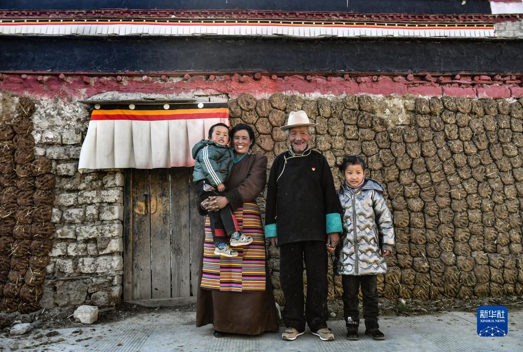 達(dá)國杰(右二)和家人在家門前合影(2021年3月22日攝)。新華社記者 孫瑞博 攝