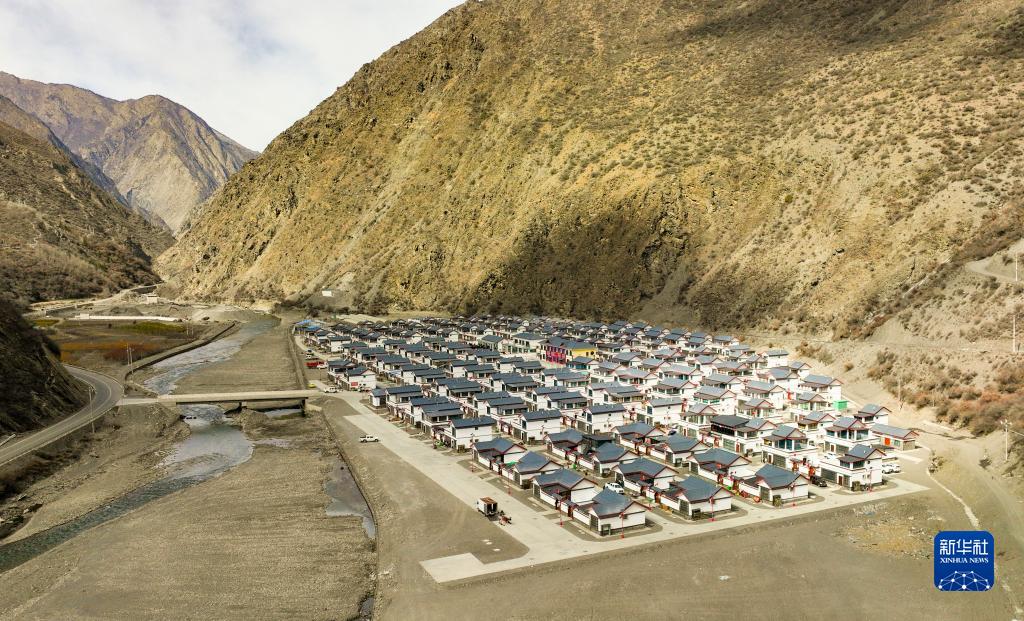 這是西藏山南隆子縣斗玉珞巴民族鄉(xiāng)繞讓搬遷安置點(diǎn)(2023年2月15日攝,無人機(jī)照片)。新華社記者 晉美多吉 攝