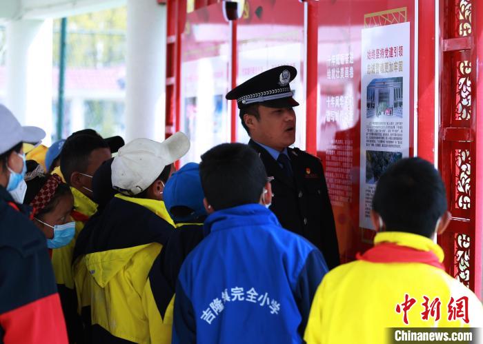 27日下午,60多名學(xué)生在老師帶領(lǐng)下走進(jìn)吉隆邊檢站警營(yíng),師生在移民管理警察引導(dǎo)下參觀警營(yíng)文化長(zhǎng)廊、警史館和閱覽室,觀摩警棍、盾牌、槍支等警用裝備,觀看西藏發(fā)展變化教育片,聆聽新舊西藏對(duì)比相關(guān)故事。