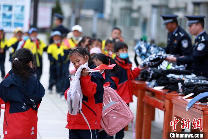 移民管理警察為學(xué)生發(fā)放書包,鼓勵(lì)學(xué)生好好學(xué)習(xí),將來(lái)成為棟梁之材?!⌒じ毁F 攝