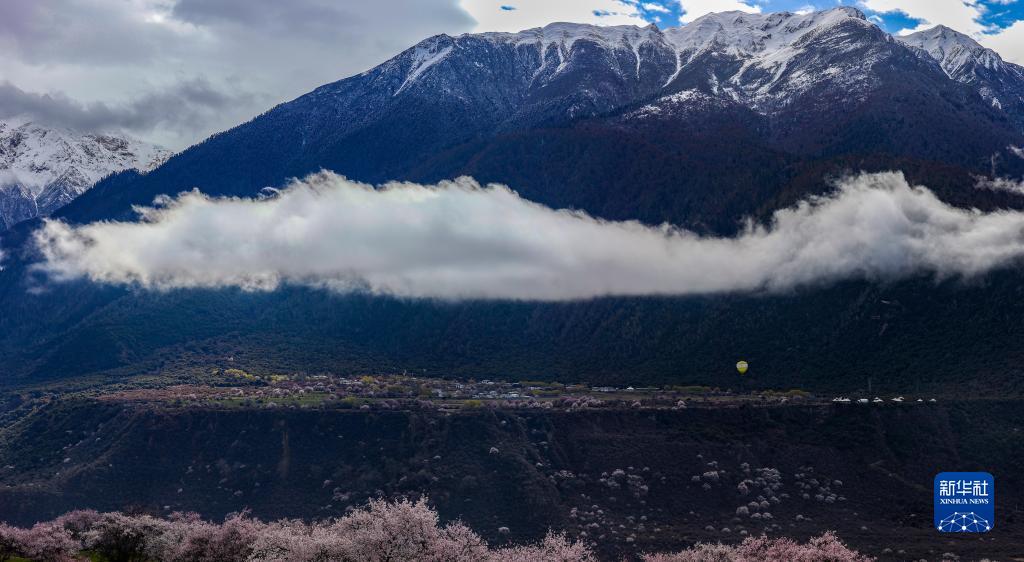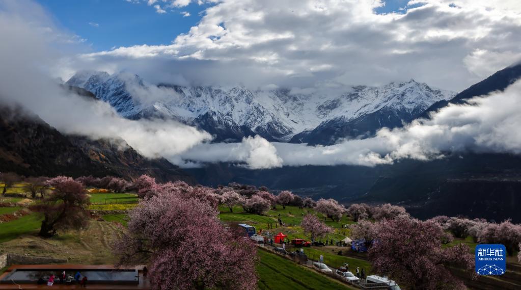 俯瞰索松村的桃花林(4月5日攝)。新華社記者 姜帆 攝