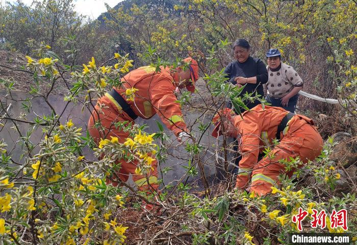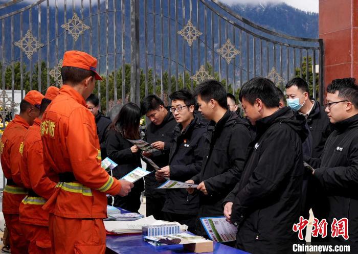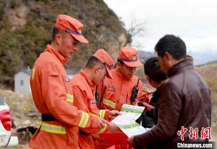 森林消防隊(duì)員正在為前來(lái)祭祀的民眾普及防火知識(shí)。 西繞拉翁 攝