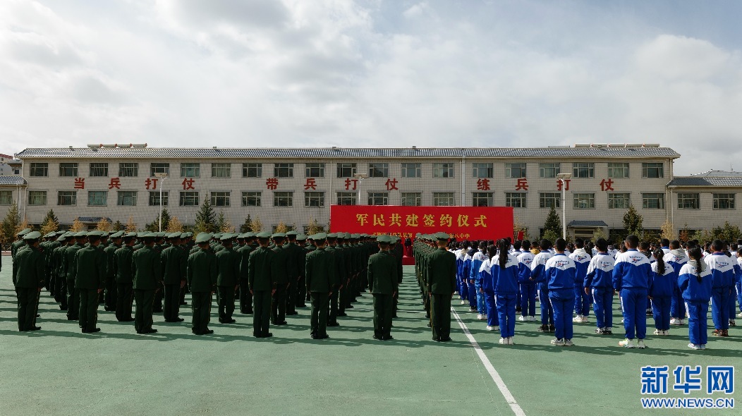 14日上午,武警西藏總隊某部與拉薩市第八中學在拉薩舉行軍民聯(lián)誼共育簽約儀式,來自武警總隊某部的官兵和拉薩市第八中學的師生約400人參加了簽約儀式。