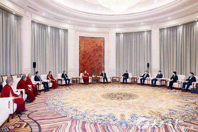 林武代表省委、省政府對班禪的到來表示熱烈歡迎,并簡要介紹了山東經濟社會發(fā)展情況。他說,山東是人口大省、經濟大省、文化大省,當前正深入貫徹黨的二十大精神,錨定“走在前、開新局”,堅決打好強信心、穩(wěn)經濟、促發(fā)展組合拳,經濟呈現全面復蘇、加快向好的發(fā)展態(tài)勢。近年來,我們全面貫徹新時代黨的治藏方略,加強對口援藏工作,“魯藏一家親”結出累累碩果。山東是全國宗教工作重點省份,我們深入學習習近平總書記關于宗教工作的重要論述,全面落實黨的宗教信仰自由政策,全省宗教領域保持和諧穩(wěn)定的良好局面。班禪是藏傳佛教大活佛,堅定擁護中國共產黨的領導,為促進藏傳佛教與社會主義社會相適應發(fā)揮了重要作用。相信在您的帶領下,藏傳佛教愛國愛教、護國利民的光榮傳統(tǒng)一定能進一步發(fā)揚光大,更好引導信教群眾維護國家統(tǒng)一、民族團結、宗教和諧。