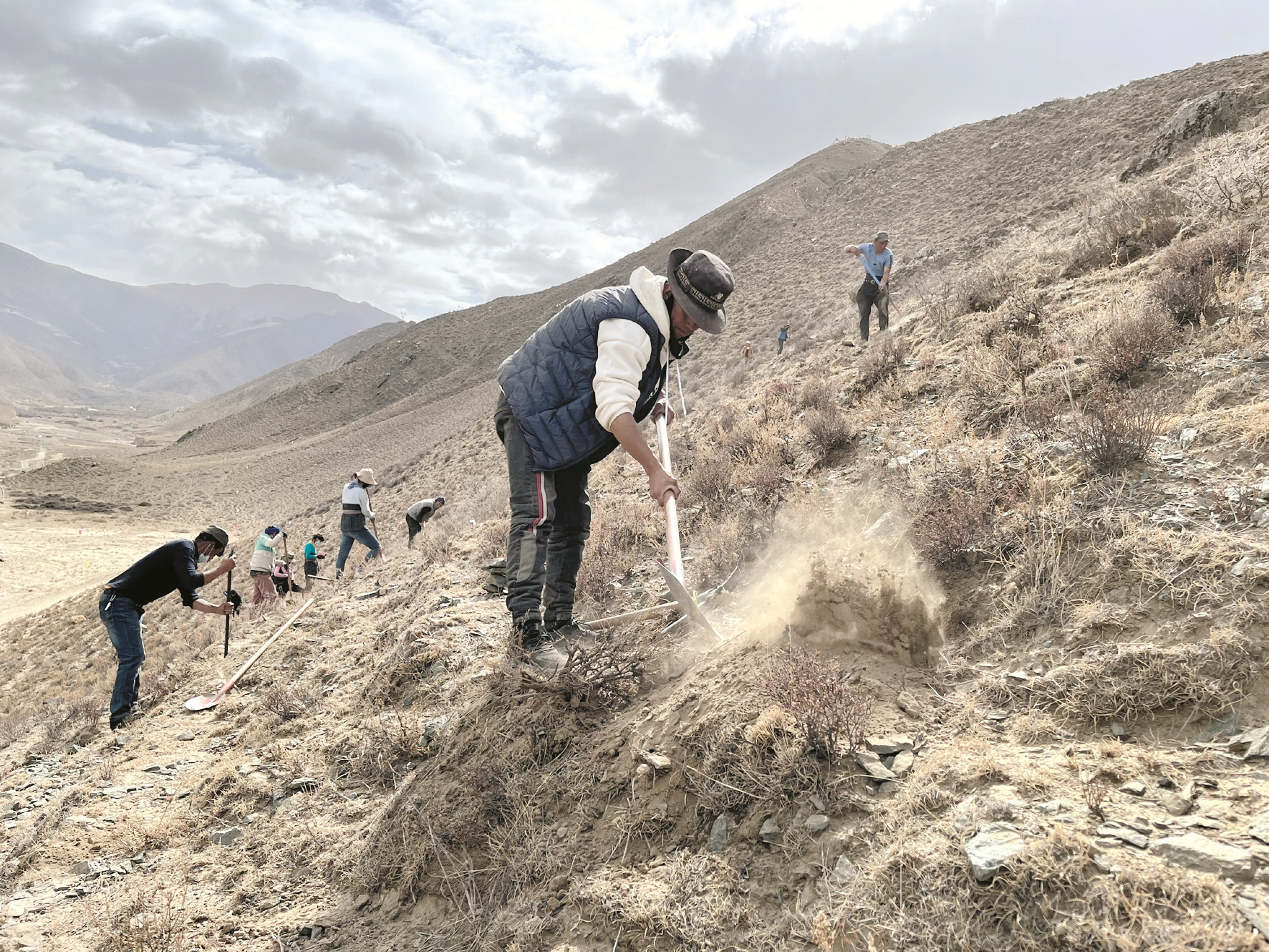 4月,正是一年春光好。記者來到曲水縣才納鄉(xiāng)才納村3-2號綠化造林項目點看到,工人們正在加緊挖坑、客土。該植樹點平均坡度在45度左右,有的地方甚至接近60度。在陡峭的坡面上挖坑、運樹、栽植需要花費大量的心血和體力。但不管山有多高、坡有多陡,按時節(jié)、高質量地把樹苗種下的生態(tài)理念已經在每一個植樹人心中落地生根。