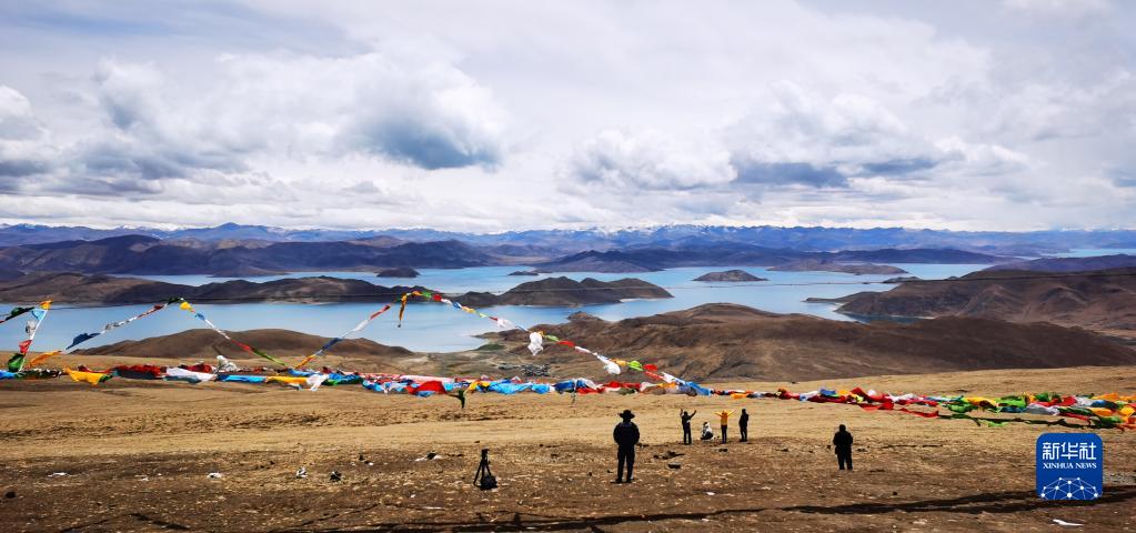 游客在羊卓雍錯魯日拉欣賞美景(5月1日攝,手機(jī)照片)。新華社記者 沈虹冰 攝