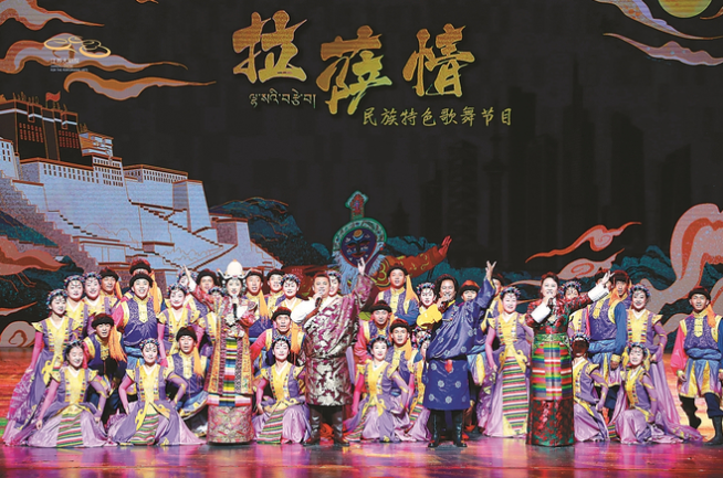 西藏,素有“歌舞的海洋”的美譽,來自民間的歌舞品類眾多、風(fēng)格各異。演出中,10多個極具藏族文化特色的歌舞類節(jié)目精彩亮相,既有歷史悠久、蜚聲中外的藏戲、傳統(tǒng)舞蹈等非遺經(jīng)典,也有反映近年來拉薩城市新面貌、人民生活新變化的歌舞節(jié)目,全面展示了拉薩不同時期、不同內(nèi)容、不同形式的風(fēng)土人情和人文魅力。