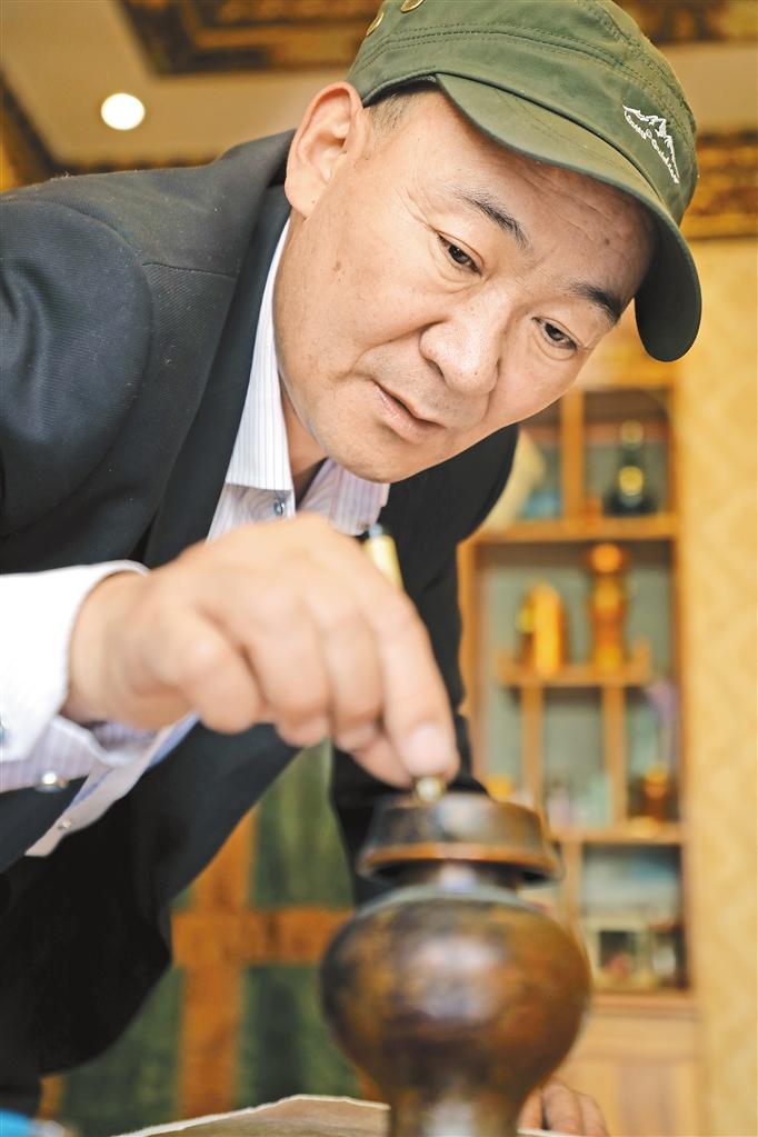藏文書法作為藏民族獨有的傳統(tǒng)文化,也是中華民族的文化瑰寶,源遠流長且極富藝術魅力?!皬囊粋€普普通通的村民變成國家級非物質文化遺產(chǎn)傳承人,我的故事就是黨和國家、自治區(qū)高度保護和傳承弘揚中華文化的一個縮影。國家和西藏投入了巨大的人力、物力和財力,使西藏優(yōu)秀傳統(tǒng)文化在有效的保護基礎上煥發(fā)出蓬勃的生機。現(xiàn)在,我們面臨著新的機遇和條件,西藏文化也必將為豐富中華文化作出新的更大貢獻?!痹黝D珠心存感激地說。(本版圖片均由記者 格桑倫珠 裴聰 攝)