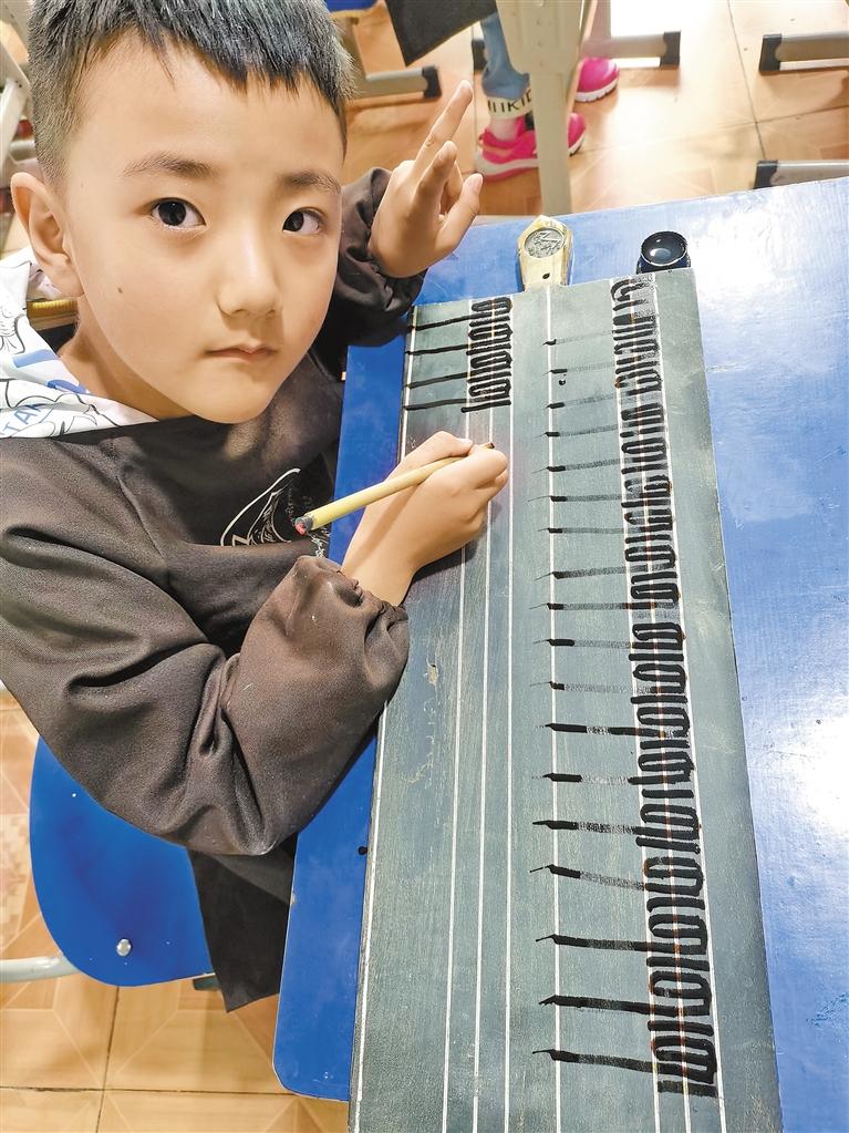 今年10歲的扎西次仁和他的同學們席地端坐,左手握木制藏文書寫板,右手持竹筆,一起認真練習尼赤派書法。扎西頓珠平時利用閑暇時間在家免費教授書法?!昂⒆幽茉趪壹壏沁z傳承人門下學習藏文書法,機會難得,我們?nèi)胰朔浅VС?,也非常榮幸。孩子也學得非常認真?!笔忻窭纺弥鴥鹤觿倢懞玫臅ㄗ髌犯锌?。