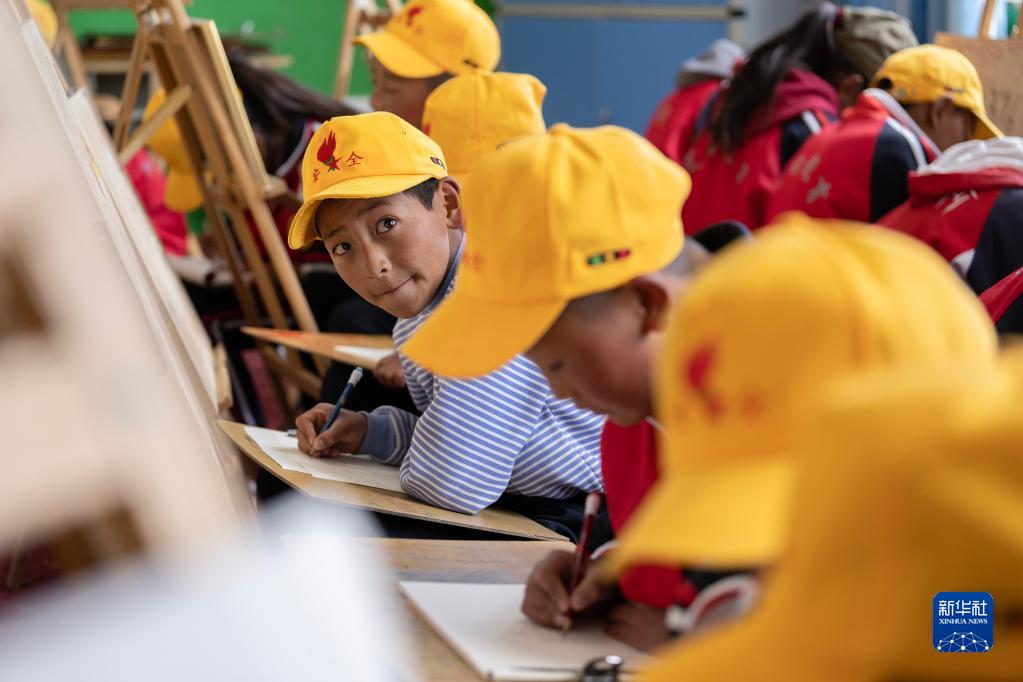 扎西宗鄉(xiāng)完全小學(xué)的學(xué)生在上美術(shù)課(6月5日攝)。新華社記者 晉美多吉 攝