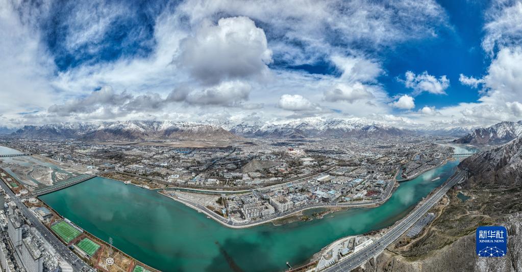 這是拉薩市全景(3月30日攝,無人機照片)。新華社記者 孫非 攝