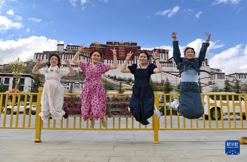 游客在布達拉宮廣場上合影留念(6月16日攝)。新華社記者 張汝鋒 攝