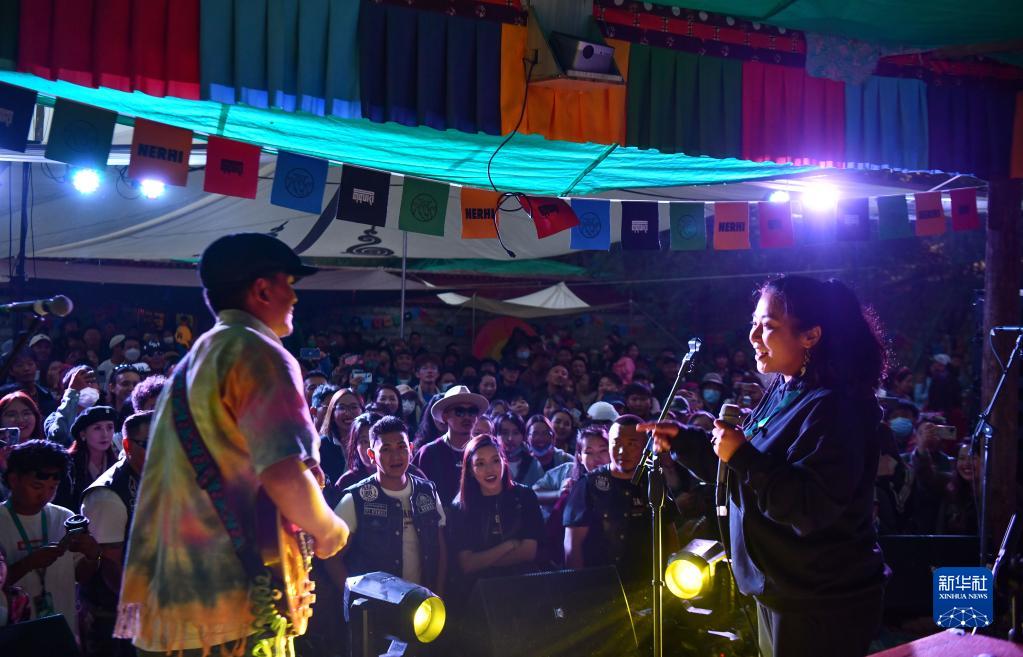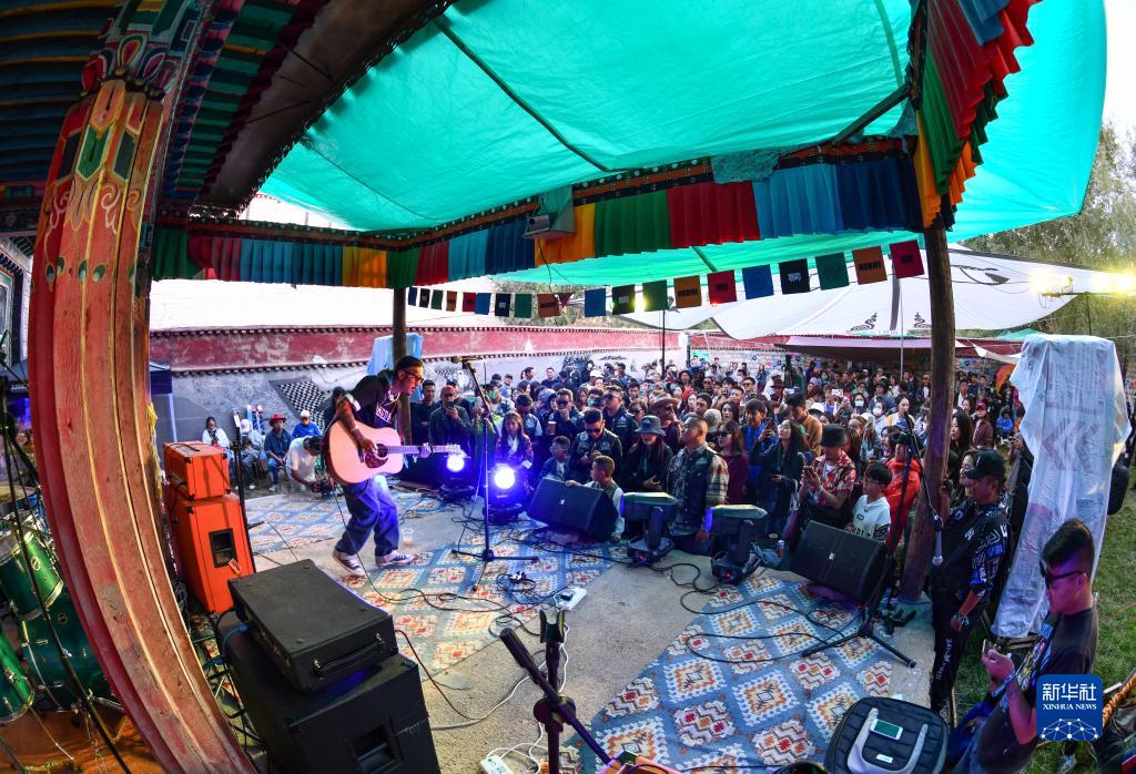 拉薩的年輕人在參加現(xiàn)場音樂會(2022年7月29日攝)。新華社記者 晉美多吉 攝