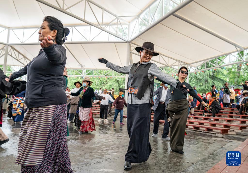 在宗角祿康公園,市民們跳起鍋莊舞(6月14日攝)。新華社記者 孫非 攝