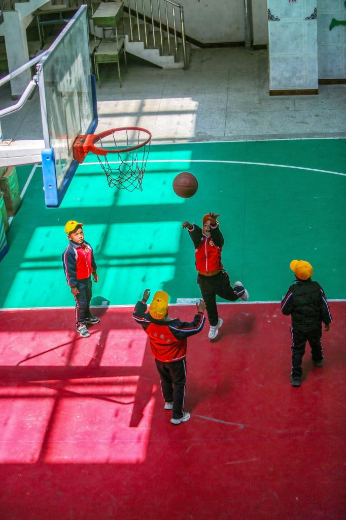 6月5日,扎西宗鄉(xiāng)完全小學(xué)學(xué)生在籃球課上投籃。