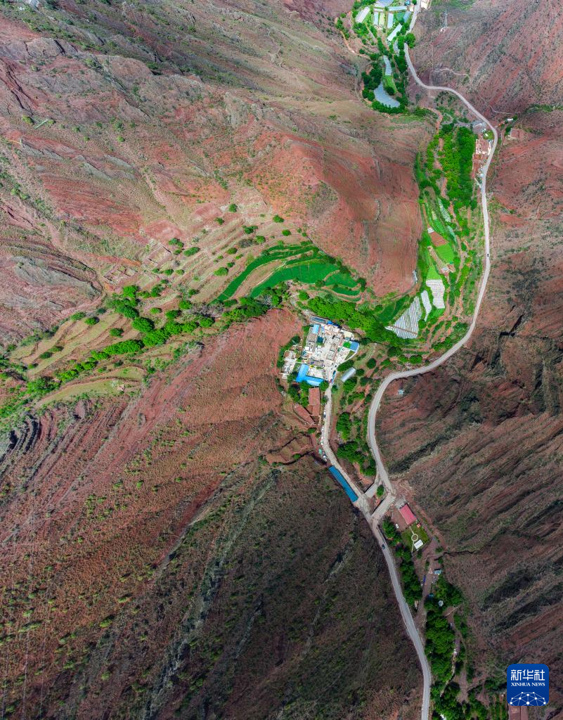6月22日在國(guó)道317線昌都段拍攝的丁青縣的村莊(無(wú)人機(jī)照片)。新華社記者 姜帆 攝
