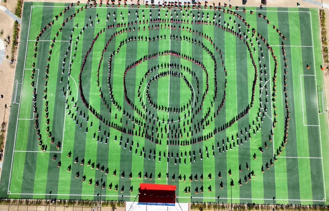 伴隨場上一陣強(qiáng)勁有力的鼓點(diǎn)響起,來自各縣的演員身著節(jié)日盛裝,堆諧、洛諧、司馬卓等民間歌舞風(fēng)格獨(dú)特、歷久彌新,在幾層大半圓橫排式的流動(dòng)陣型中慢慢變換成太陽、月亮、滿天星等陣型。