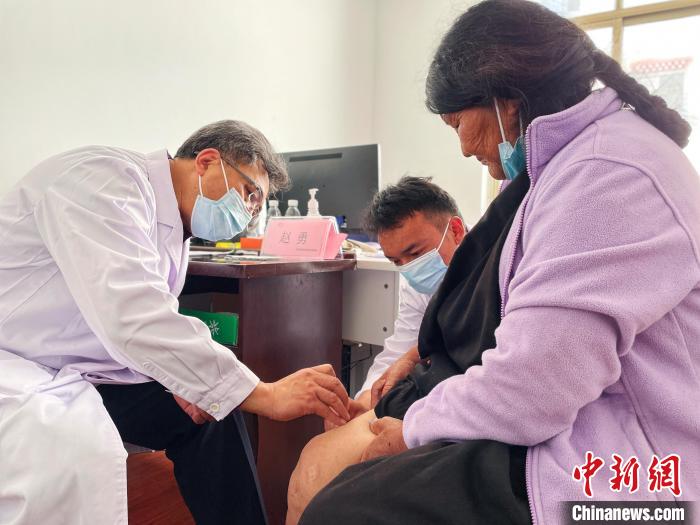 在他的專門診室外排滿了步履蹣跚的老人,膝蓋疼、腰疼、腿疼是這個(gè)診室內(nèi)聽(tīng)到最多的患者主訴,為了掌握病人按壓疼痛反饋,趙勇迅速學(xué)會(huì)了藏語(yǔ)“疼不疼”的說(shuō)法。定位、消毒、進(jìn)針、松解、出針一套動(dòng)作一氣呵成,排隊(duì)的老人對(duì)這樣的治療充滿好奇和期待。