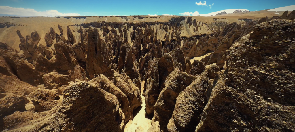 冰川雪水的侵蝕和沖刷,造就了谷內(nèi)土林狀自然景觀,成群排列、千姿百態(tài)。
