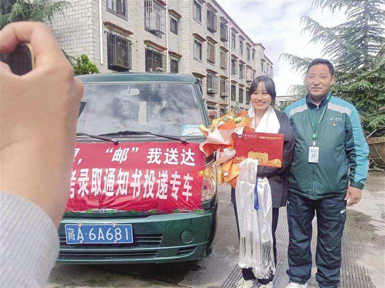 7月18日,家住西藏自治區(qū)拉薩市城關區(qū)扎基路的白瑪玉珍收到了中國郵政拉薩分公司投遞員送來的錄取通知書。今年18歲的白瑪玉珍畢業(yè)于拉薩北京實驗中學,被中國人民公安大學錄取,這是今年西藏首封高考錄取通知書。西藏郵政專門成立區(qū)、市兩級項目運作團隊,負責高考錄取通知書管理、客戶查詢、投訴等工作。