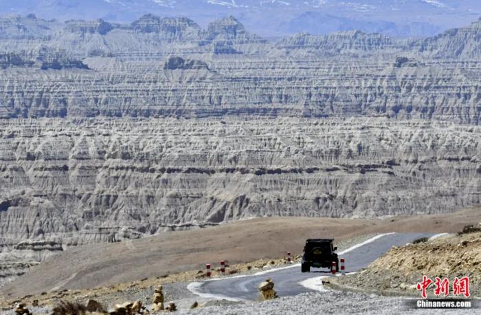汽車駛向西藏阿里札達(dá)土林。札達(dá)土林位于西藏阿里地區(qū)札達(dá)縣境內(nèi),土林千溝萬壑,形態(tài)奇絕,景色迷人。李林 攝