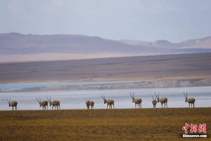 西藏那曲羌塘草原藏羚羊群在水源地附近覓食。江飛波 攝
